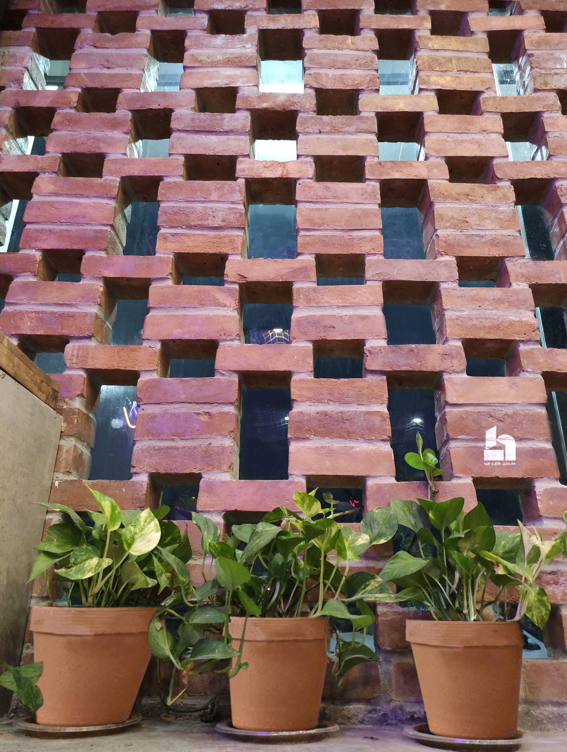 انتخاب متریال هایی مثل چمن (بستر اصلی زمین فوتبال) که رنگ سبز دارد و آجر و چوب با رنگ قهوه ای، علاوه بر ایجاد تعادل رنگی تم اصلی کافه، بهترین راه حل برای موضوع اولیه (طراحی یک کافه سنتی-فوتبالی) بود.