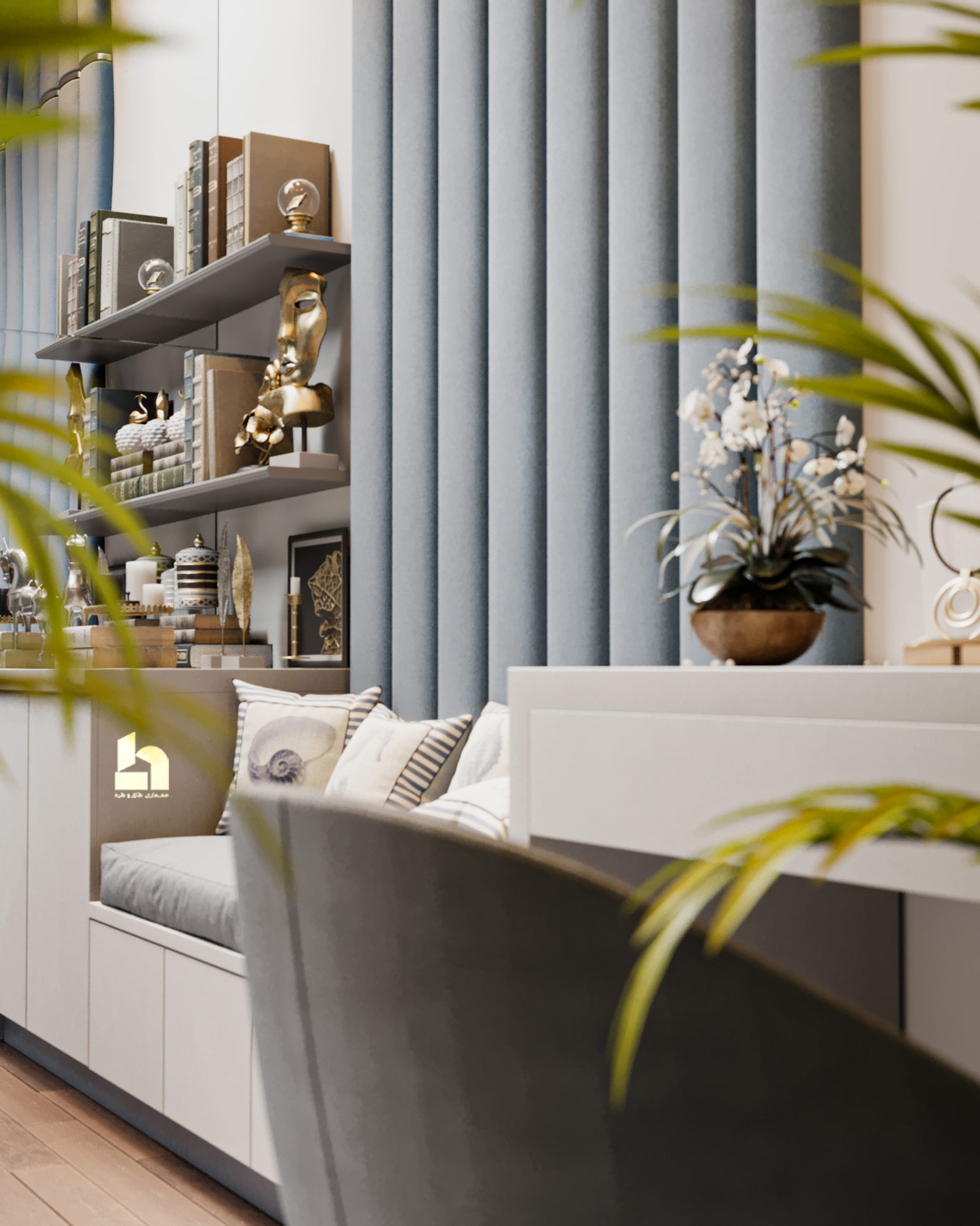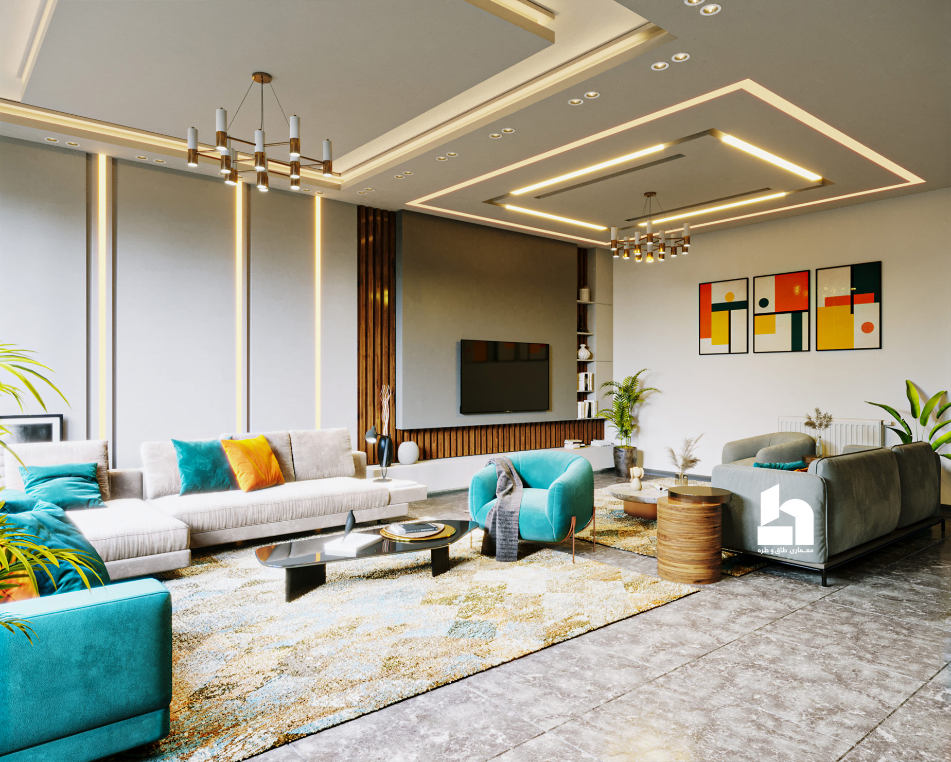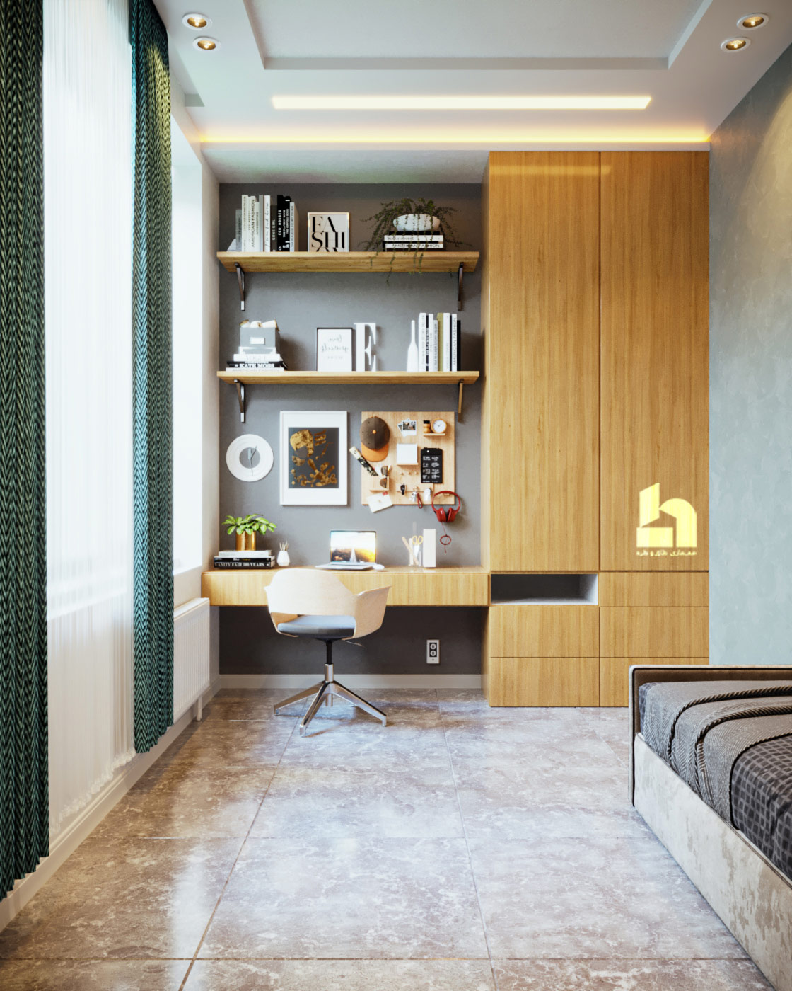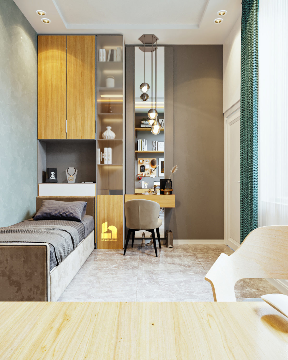 نمای اصلی ساختمان با ترکیب دو متریال سنگ و چوب طراحی شد، به گونه ای که در ورودی واحد با چوب از بقیه بخش های نما تفکیک شد و استفاده از لاین های نوری کمکی بود به جلوه بخشیدن به سایر قسمت های نما که سنگ کرم و مشکی در نظر گرفته شده بود.