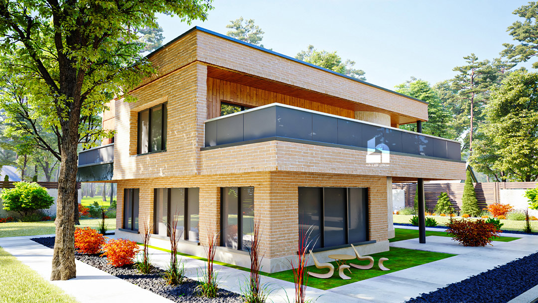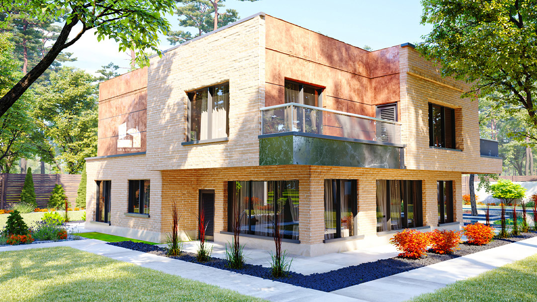 هندسه ایجاد شده نمای این ساختمان از شکستگی های فرم سازه، جرقه ای شد تا ایده مکعب های آجری مبنای اولیه این طراحی باشد.