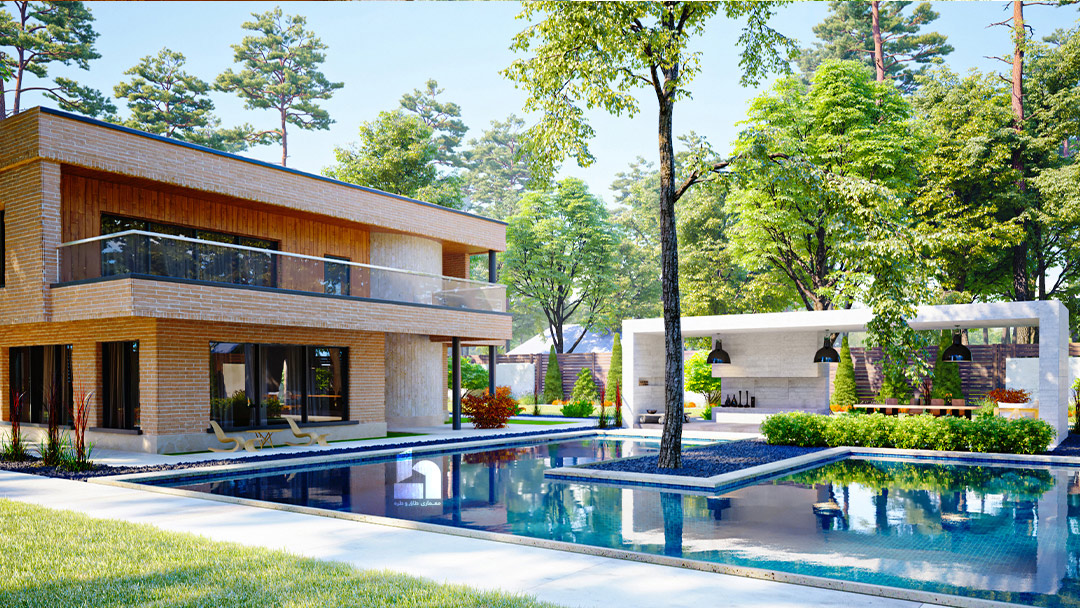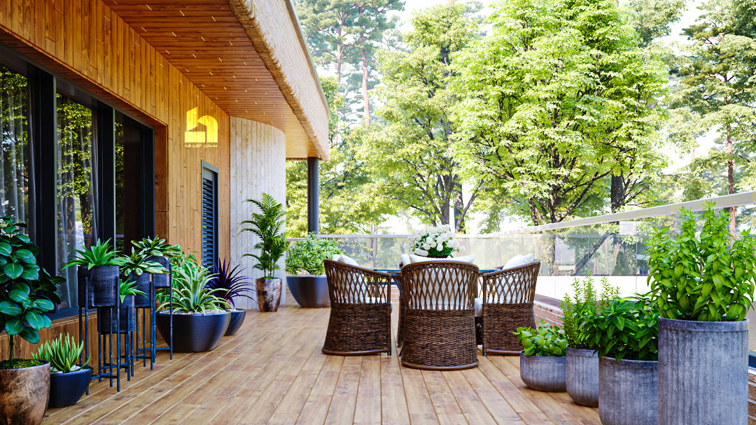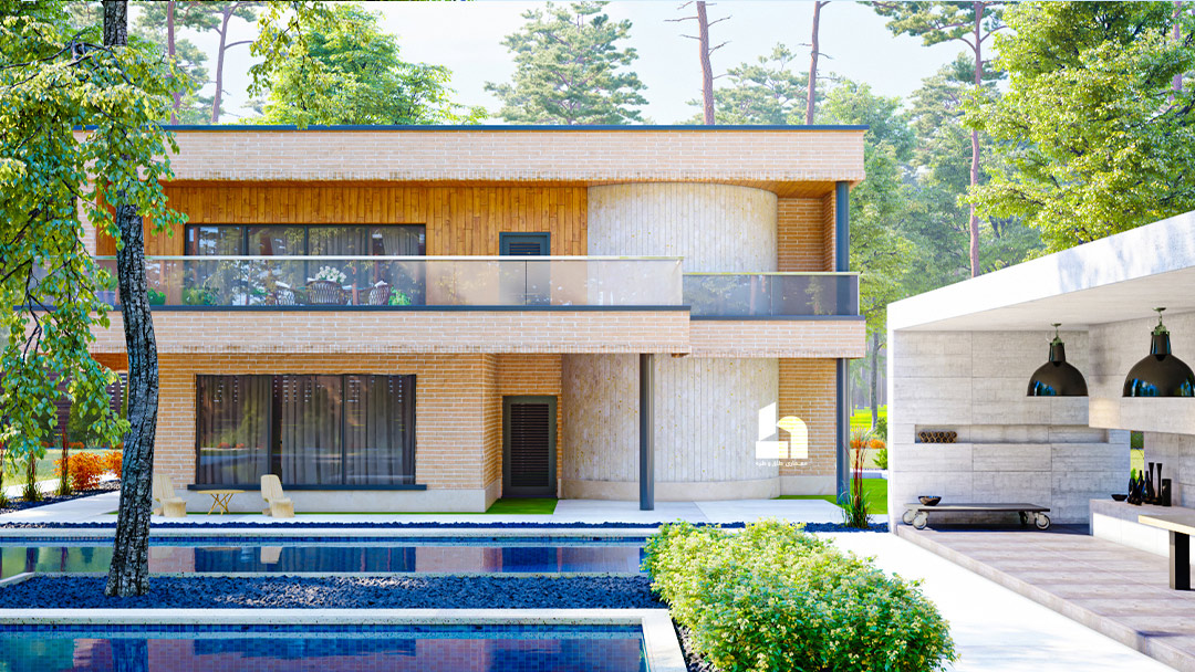 با توجه به تابش نور جنوب و قرارگیری تراس در این جبهه تصمیم برا این گرفته شد تا استخر به منظور تامین رطوبت و تأمین زیبایی های بصری در حیاط جنوبی باغ قرار بگیرد.